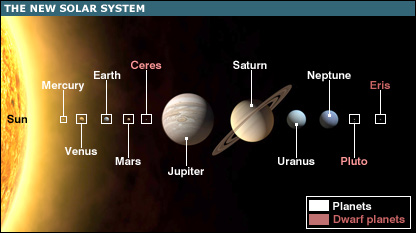 La UAI mantuvo una reunión general en Agosto de 2006: en la propuesta inicial sobre la definición del término "planeta", Éris sería categorizado como un planeta. Sin embargo, la presión de un grupo de astrónomos consiguió que una nueva definición fuera escrita, que acabó por ser aprobada unánimemente, expulsando a Éris, Ceres y Plutón como planetas y otorgándoles el nuevo denominativo, creado para un nuevo grupo de cuerpos celestes de similares características, de "planetas-enanos", que no son reconocidos como planetas principales. Éris recibió el nombre de la diosa griega de la discordia.