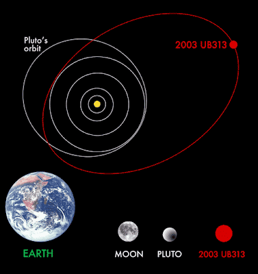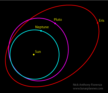 Éris es el mayor cuerpo celeste conocido más allá de la órbita de Neptuno, luego, mayor que Plutón. Tal como Plutón, está compuesto de una mezcla sólida de hielo y roca. Ambos pueden ser vistos como objetos del Cinturón de Kuiper o como planetas helados, a pesar de ser Éris del tipo disperso, o sea, que habría sido formado en la parte interior del Cinturón, pero posteriormente sería expulsado a una órbita más distante debido a una posible influencia gravitacional de Neptuno.