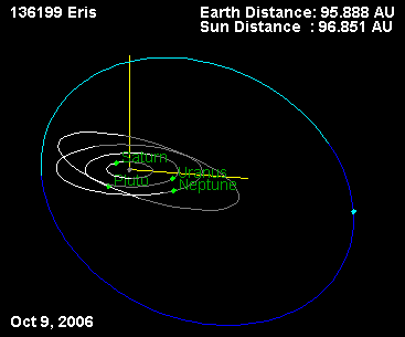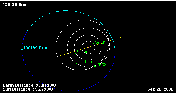 Éris está tan alejada del Sol que este último, en los cielos de aquel mundo, deberá aparecer sólo como una estrella brillante.
